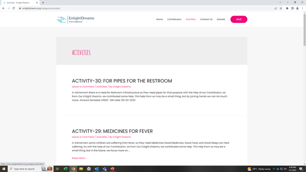 1.The Maintenance work being done in Ashramam in a YouTube video and in a Website. – (This can be done by monetizing the video on various platform like YouTube, telegram, Facebook, if possible, get a sponsor)
